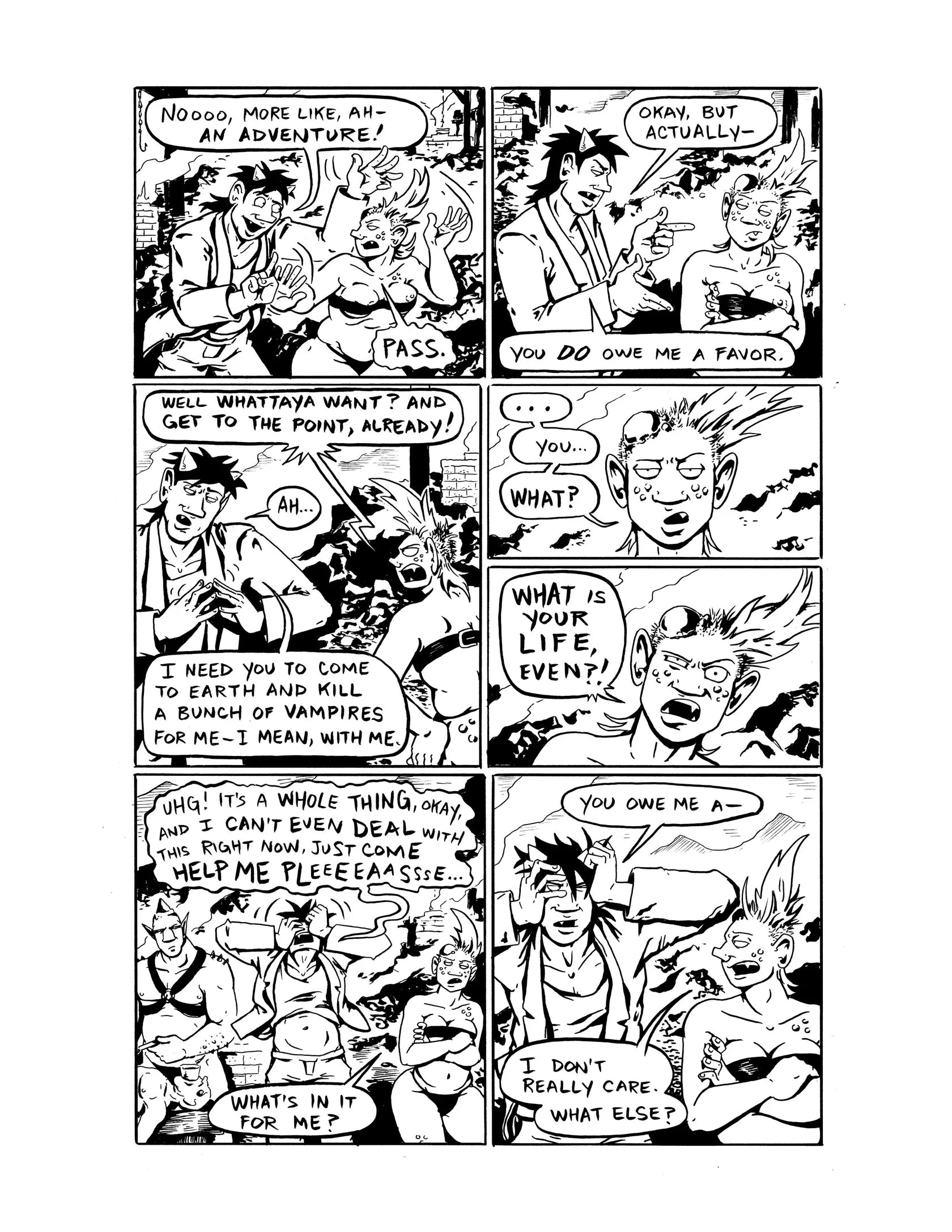 Hell is exactly as you imagine it: a bloated bureaucracy of tedious procedures and arbitrary rules! Here, infernal incubus Skud enjoys a much more luxurious life than his pit demon sibling, Bug. But when his repeated rule-breaking gets him in trouble with his boss, the only way out of a permanent demotion is a simple vampire-slaying mission up on Earth. (Turns out, the paper-pushers in hell aren't big fans of the loopholes that vampires create). Enlisting the aid of his more violent sibling, the two embark on what should be a fairly straightforward mission... unless of course, it’s not.