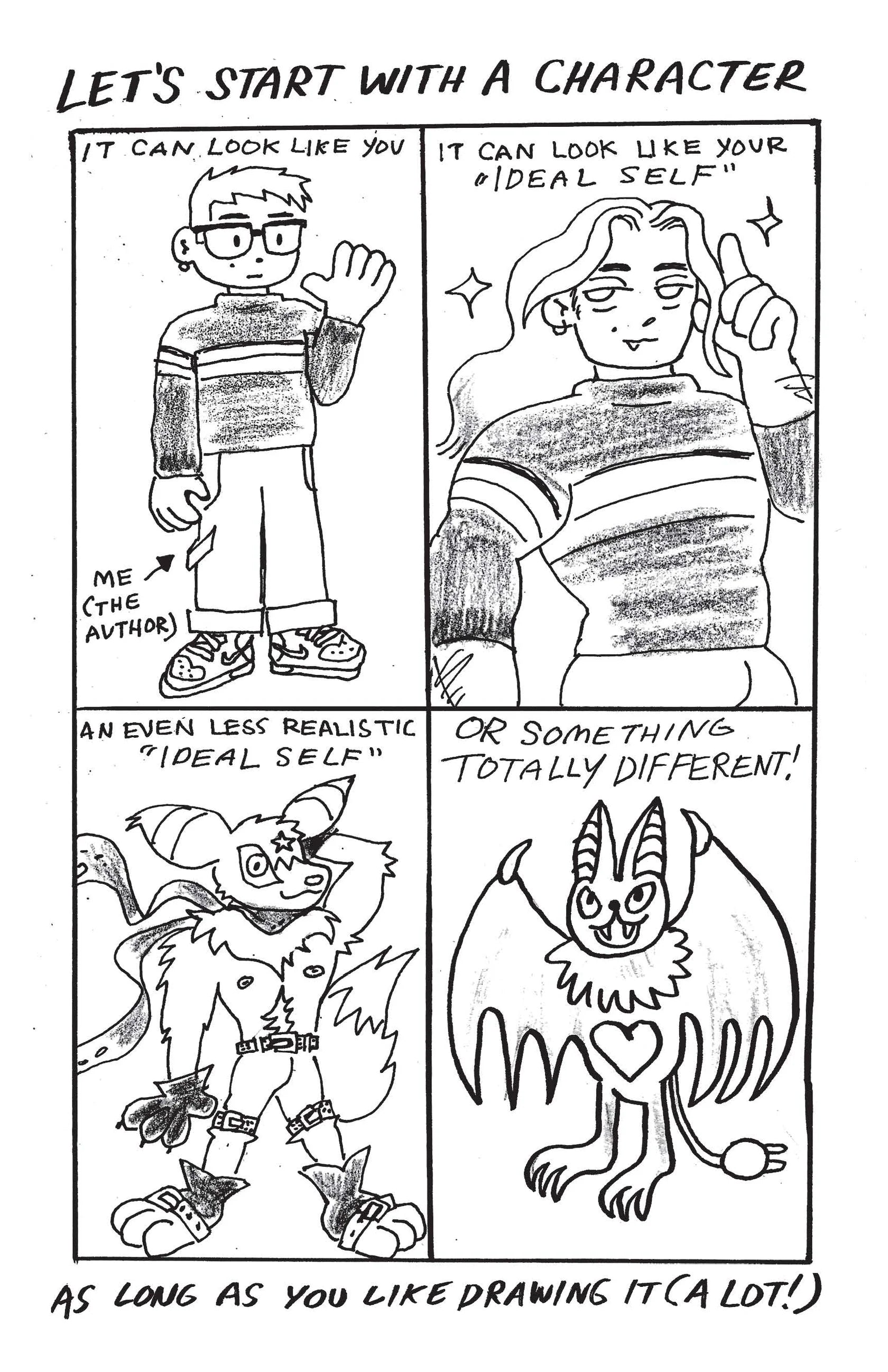 A friendly, easy-to-understand explainer for making comic zines from comics educator Eddy Atoms! Appropriate for kids to adults, this guide shows you the basic steps for creating your very own comic, from brainstorming and character design to layouts and production. Grab some paper, some pens, a stapler, and have fun!